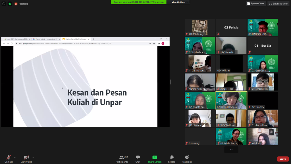 Selasa, 15 Desember 2020 Program Studi Akuntansi FE Unpar Mengadakan Courtesy visit yang dilaksanakan secara daring dengan tujuan untuk memperkenalkan Program Studi Akuntansi FE Unpar kepada Siswa-Siswi SMA Santo Aloysius 2. Rangkaian acara courtesy visit ini antara lain: pengenalan profil Program Studi Akuntansi FE Unpar, sharing Alumni SMA Santo Aloysius 2 dan Alumni Program Studi Akuntansi Unpar, peluang kerjasama dan kolaborasi, serta sesi diskusi dan tanya jawab. Acara ini dihadiri oleh Bapak dan Ibu Guru SMA Santo Aloysius 2, siswa-siswa SMA Santo Aloysius 2, Alumni SMA Santo Aloysius 2, dan Dosen-dosen Program Studi Akuntansi FE Unpar.