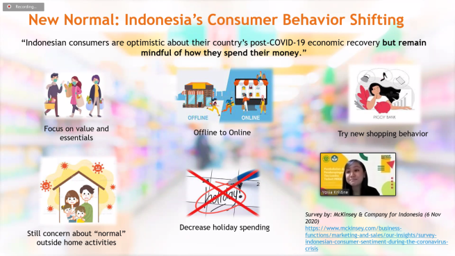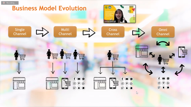 Pada kesempatan ini, beliau membawakan tema Accounting in Retail Industry yang sangat menarik untuk memberikan bekal pada tim lomba Akuntansi Fakultas Ekonomi Universitas Parahyangan. Retail merupakan bisnis yang dekat sekali dengan kita semua. Mulai tahun 2019, terdapat beberapa krisis salah satunya US-China Trade War dimana barang-barang buatan Cina dilarang di US ditambah adanya pandemi COVID-19 yang membuat adanya global regression. Hal ini tersebut memaksa kita semua untuk melakukan new normal dimana kita mulai berfokus mengubah kebiasaan kita dulu seperti apa dan fokus pada kebutuhan bukan keinginan seperti dulu. Di Indonesia sendiri pada tahun 2020 terdapat dampak yang signifikan dari adanya pandemi COVID-19 ini salah satunya adalah adanya panic buying pada kebutuhan seperti makanan dan kesehatan. Pandemi COVID-19 ini ternyata memberikan dampak positif bagi retail industry terutama untuk food and beverages karena adanya panic buying tersebut. Dari survey McKinsey terdapat consumer behaviour shifting di Indonesia karena new normal ini. Consumer behaviour shifting tersebut diantaranya mereka fokus ke value dan esensial, offline ke online, adanya shopping behaviour yang baru, lebih concern untuk melakukan aktivitas di luar rumah dan pengeluaran untuk liburan yang menjadi turun. Terdapat business model evolution terkait retail. Yang pertama single channel, multi channel, cross channel, dan omni channel.